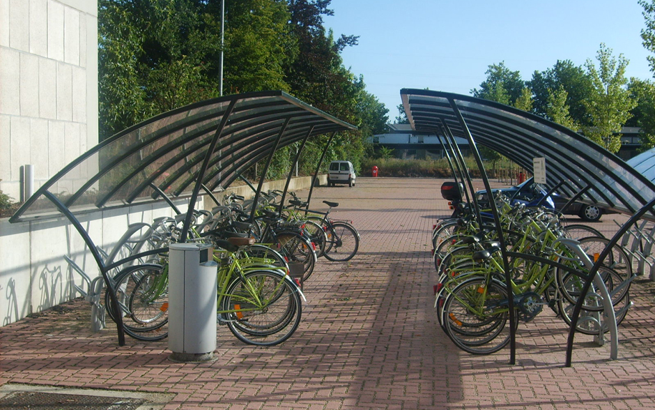 Deze open overkapping voor fietsen en motoren past door haar vormgeving moeiteloos in iedere omgeving. De Ligna biedt verschillende opstellingsmogelijkheden en is eenvoudig met basis- en aanbouwmodules uit te breiden. Een geïntegreerd fietsparkeersysteem behoort ook tot de mogelijkheden.