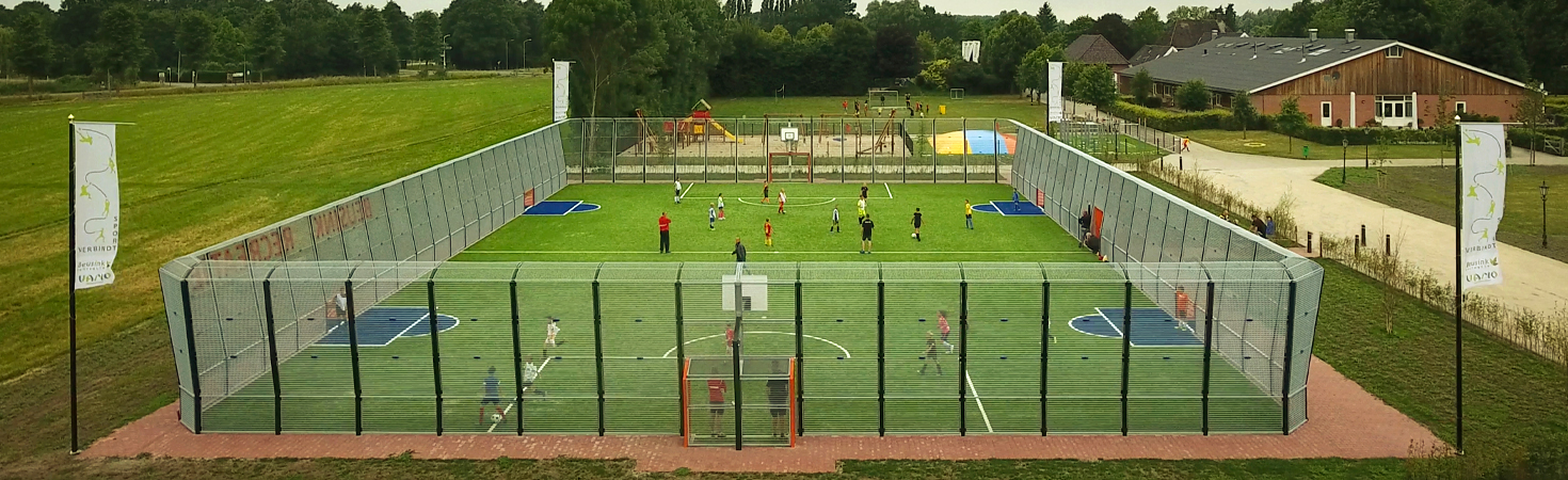 Iedere situatie is anders, eveneens als uw wensen en behoeften. Samen met u stemmen we de sport- en spelvoorziening daarop af. Denk aan uitdagende sport- en spelveldjes met een mix van voetbal, hockey, basketbal, etc.. En laat u door ons adviseren over de grootte, de functionaliteiten of zelfs de kleur en type van de ondergrond. Van pannaveldjes tot aan complete sportkooien waarin tot wel 7 sporten gelijktijdig beoefend kunnen worden. Onze modulaire oplossingen bieden verder genoeg opties om het stadion bijvoorbeeld mee te laten groeien met de jeugd of uw jaarlijkse budget door bijvoorbeeld de sportkooi steeds hoger te maken.
